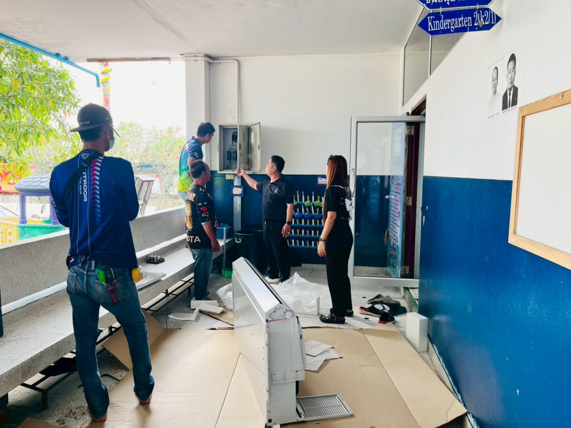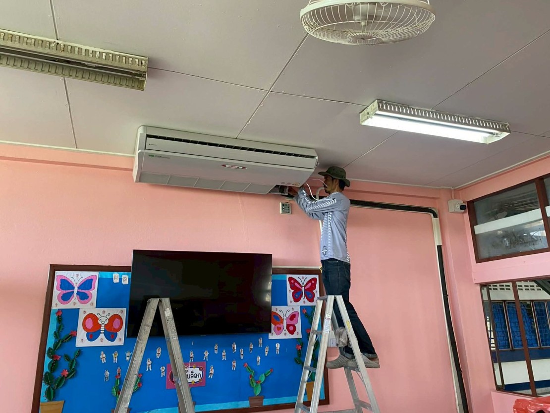 ดำเนินการติดตั้งเครื่องปรับอากาศครบทุกห้องเรียน ทุกระดับชั้นเป็นที่เรียบร้อยแล้ว