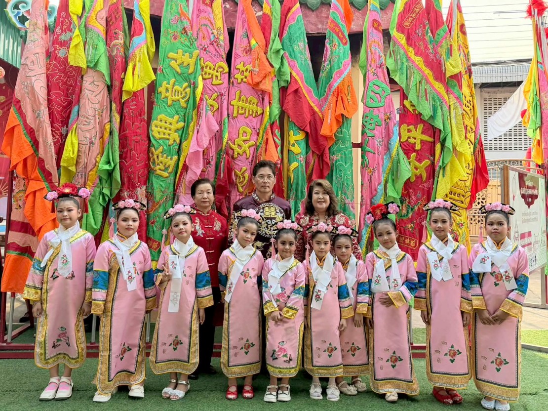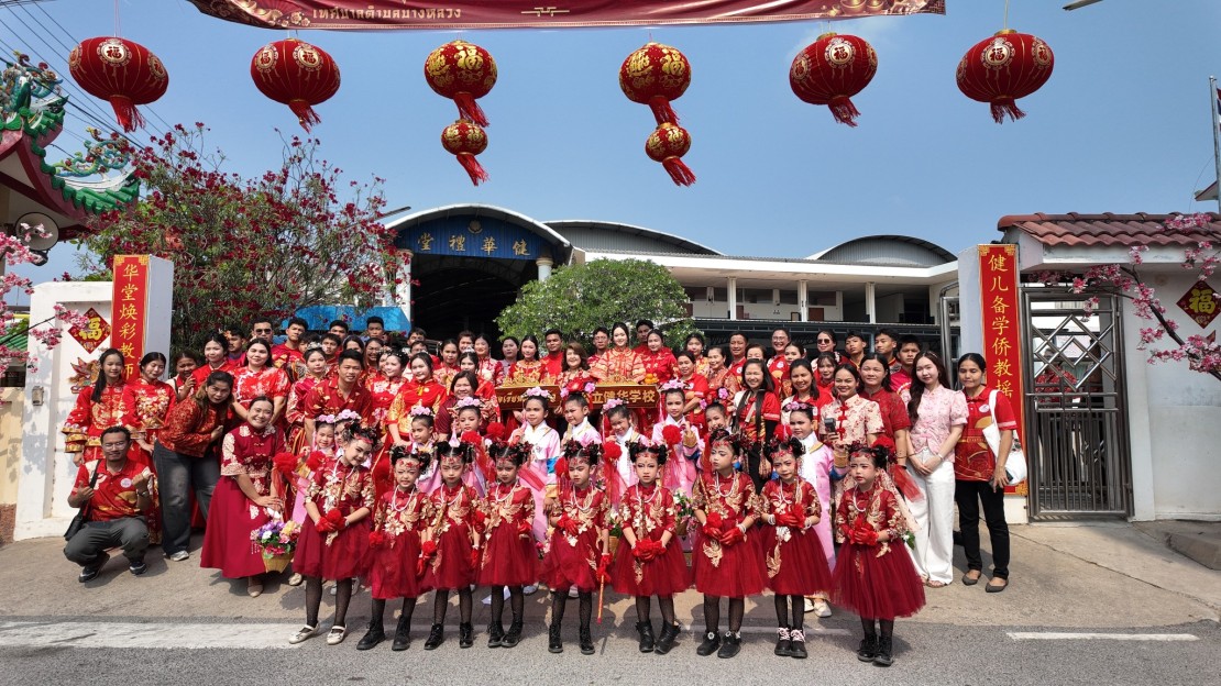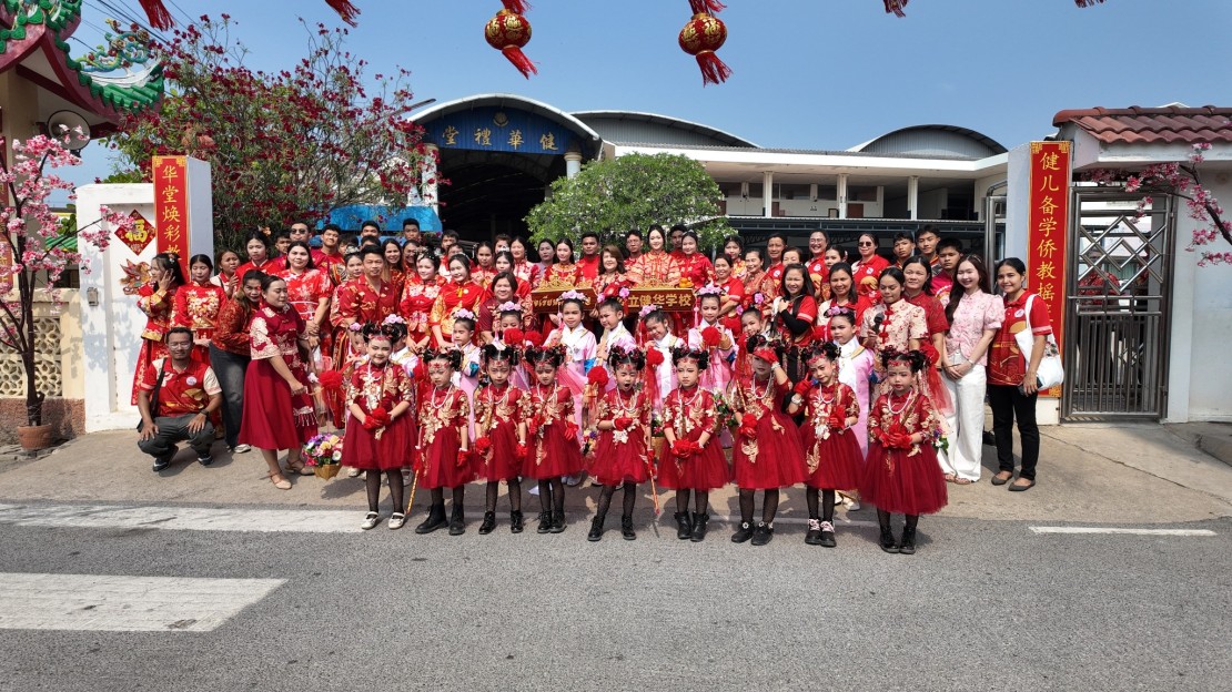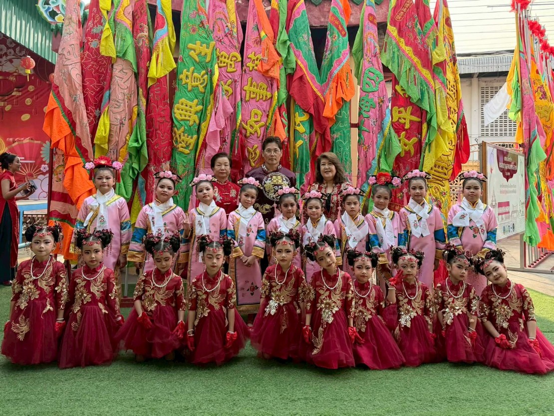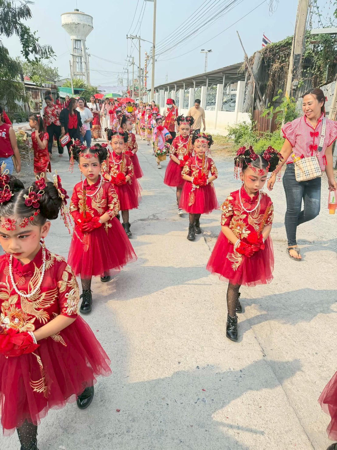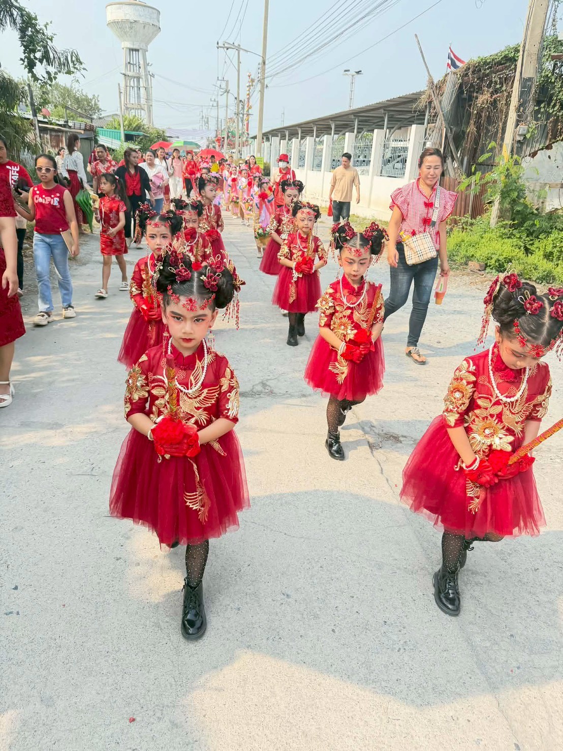ในการนี้ นักเรียนโรงเรียนเจี้ยนหัวได้เข้าร่วมขบวนแห่อย่างพร้อมเพรียงและสง่างาม โดยร่วมถือธูปมงคลและหาบกระเช้าดอกไม้มงคลที่จัดตกแต่งอย่างประณีต อีกทั้งยังมีการบรรเลงดนตรีจีนอันไพเราะ สร้างบรรยากาศแห่งความรื่นเริงและเป็นสิริมงคลให้แก่ผู้ร่วมงาน นอกจากนี้ ยังมีการแสดงระบำสาวน้อยที่อ่อนช้อยงดงาม สะท้อนถึงความสามารถ ความตั้งใจ และความภาคภูมิใจของนักเรียนในการมีส่วนร่วมกับกิจกรรมสำคัญของชุมชน
