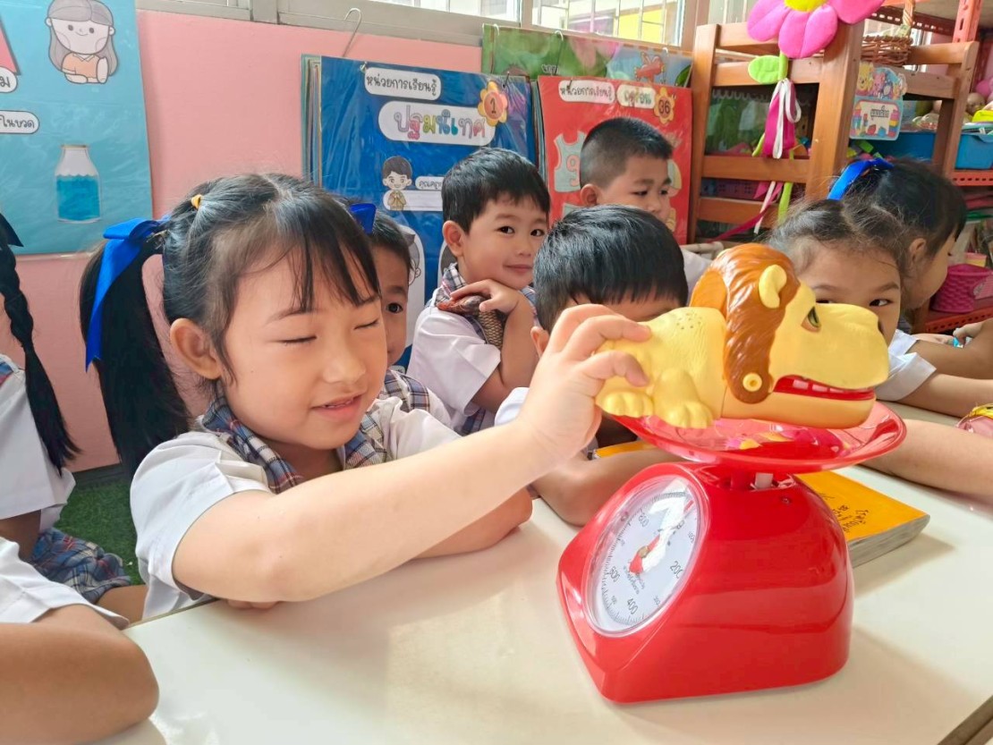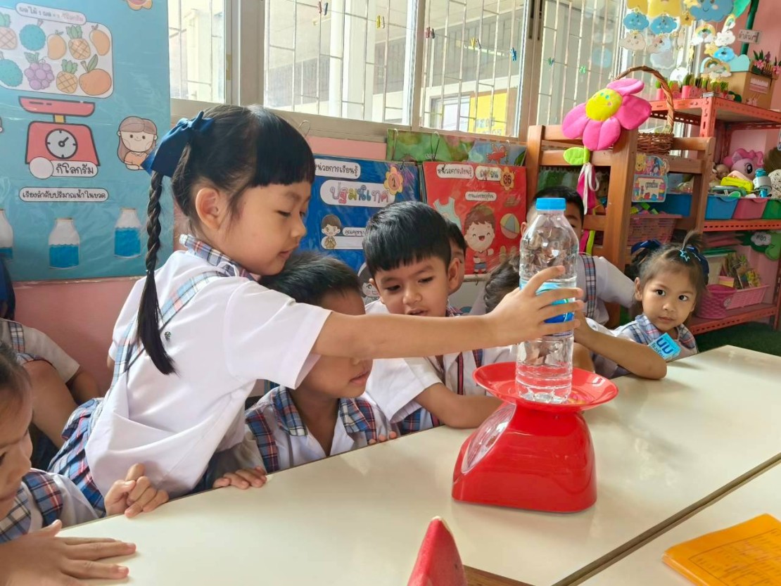 เพื่อส่งเสริมพัฒนาการด้านสติปัญญาและทักษะกระบวนการคิดของเด็กปฐมวัย โดยเด็ก ๆ ได้เรียนรู้ผ่านการลงมือปฏิบัติจริง เช่น การตวงน้ำ การชั่งสิ่งของ และการเปรียบเทียบหนัก–เบา มาก–น้อย