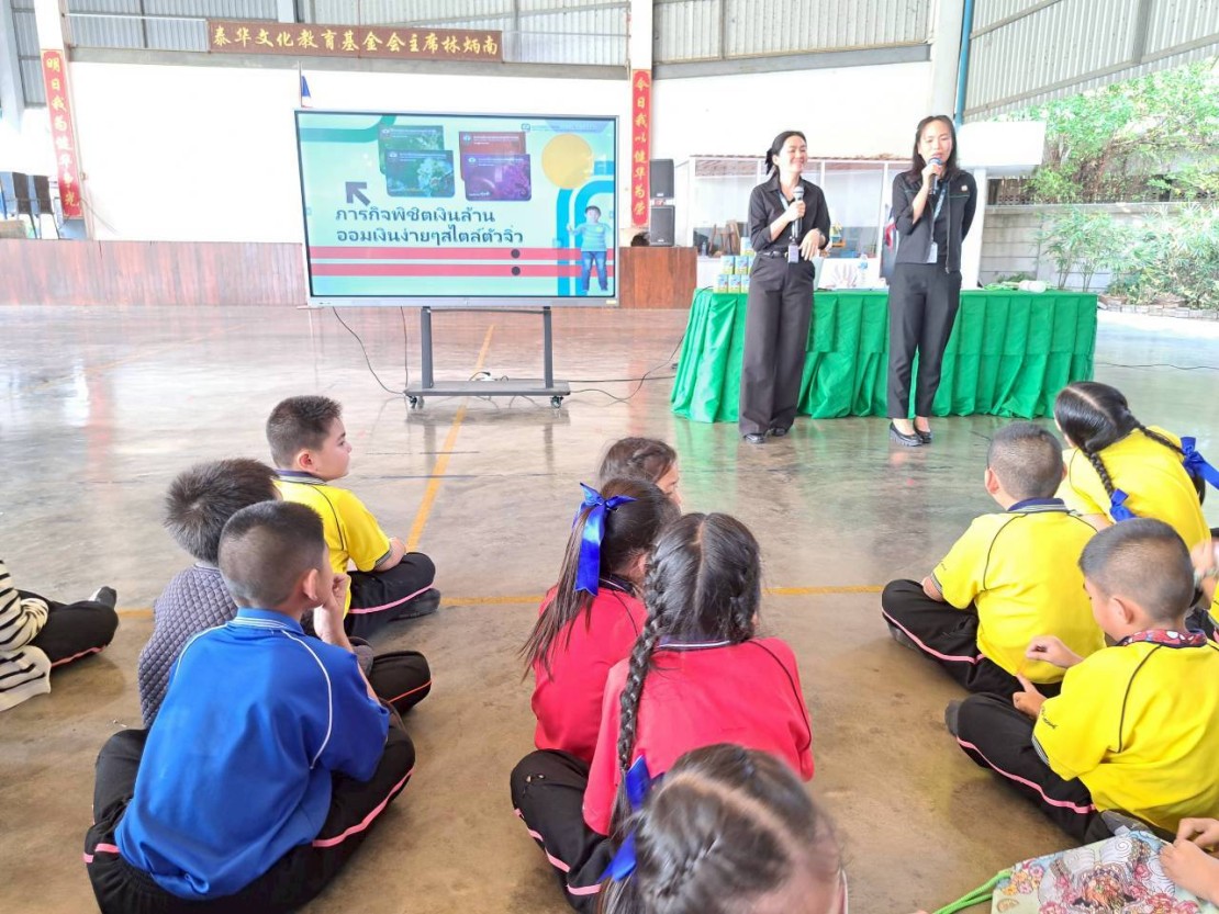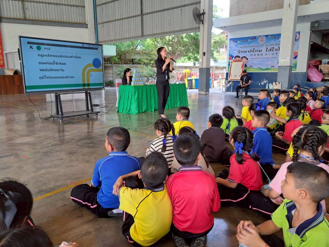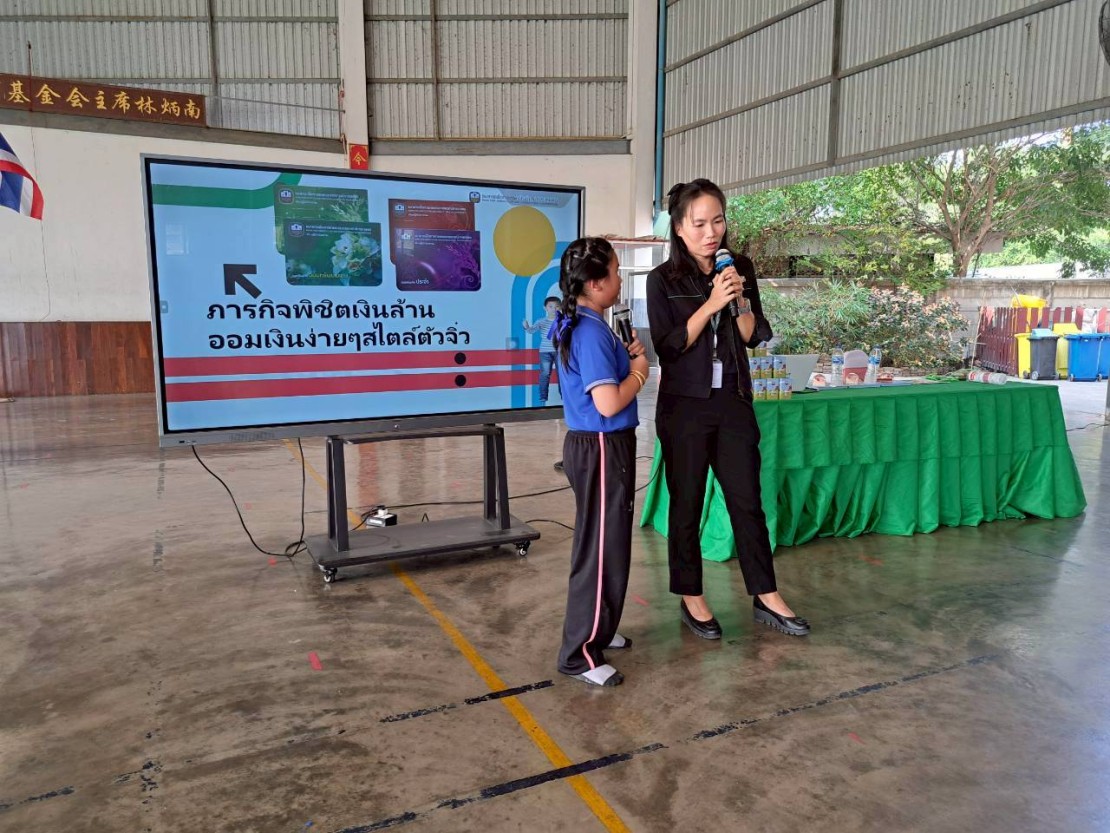 เจ้าหน้าที่ธนาคารเพื่อการเกษตรและสหกรณ์การเกษตร(ธ.ก.ส.) ให้ความรู้ด้านการออมเงินแก่นักเรียน