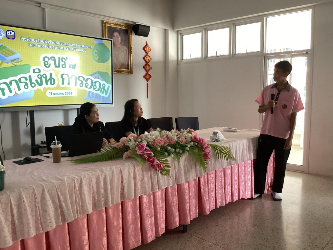 โดยมอบหมายให้เจ้าหน้าที่ธนาคารเพื่อการเกษตรและสหกรณ์การเกษตร (ธ.ก.ส.) สาขาตำบลบางหลวง มาถ่ายทอดประสบการณ์และให้ความรู้ด้านการออมเงินแก่นักเรียน เพื่อสร้างความตระหนักรู้ด้านการวางแผนทางการเงิน เสริมสร้างวินัยในการออม และปลูกฝังแนวคิดการใช้เงินอย่างมีคุณค่าให้กับนักเรียน