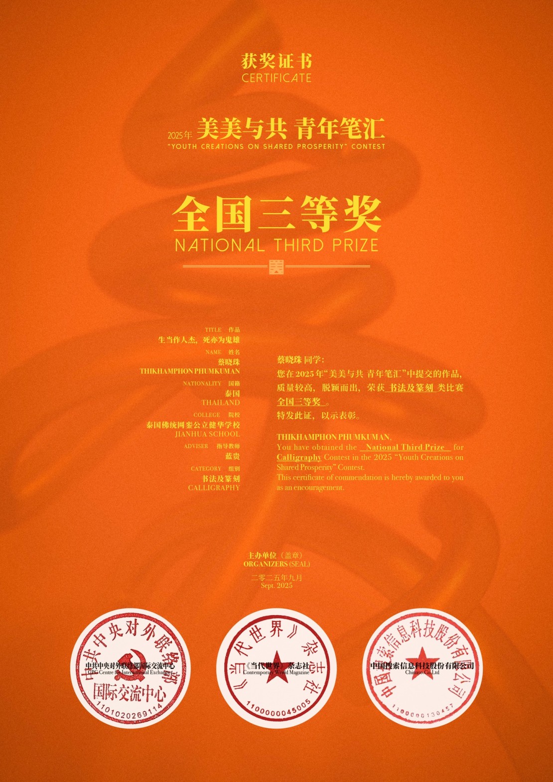 โรงเรียนเจี้ยนหัวส่งผลงานนักเรียนเข้าร่วมการแข่งขันและได้รับรางวัล