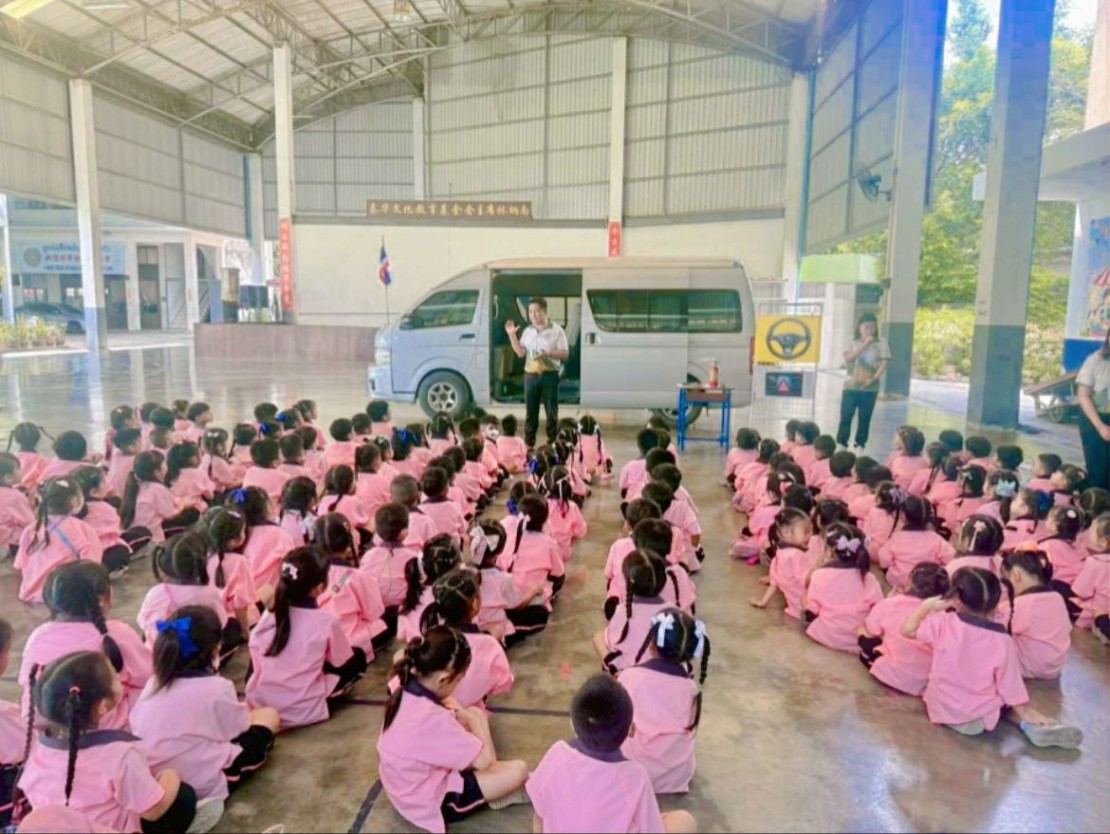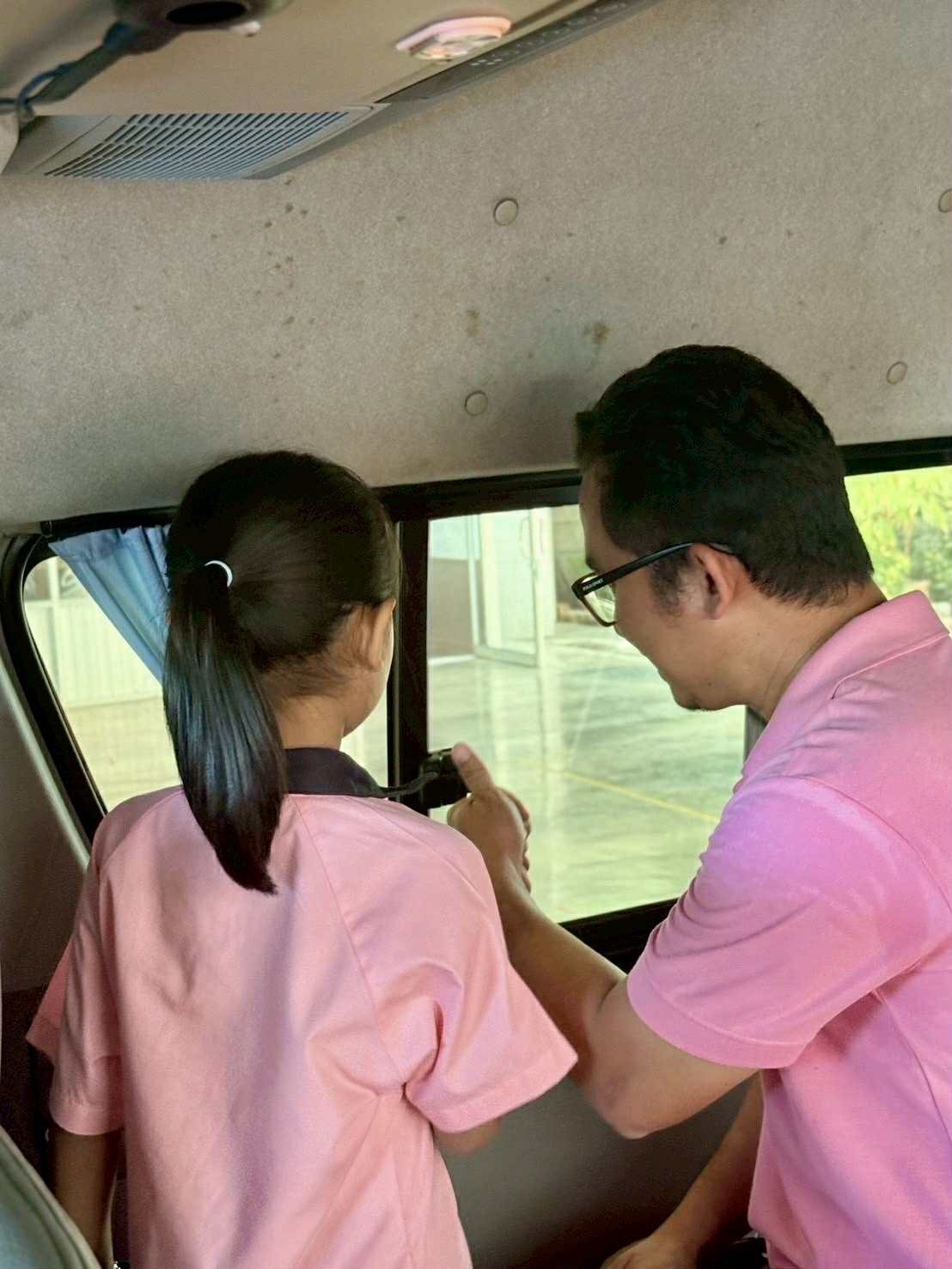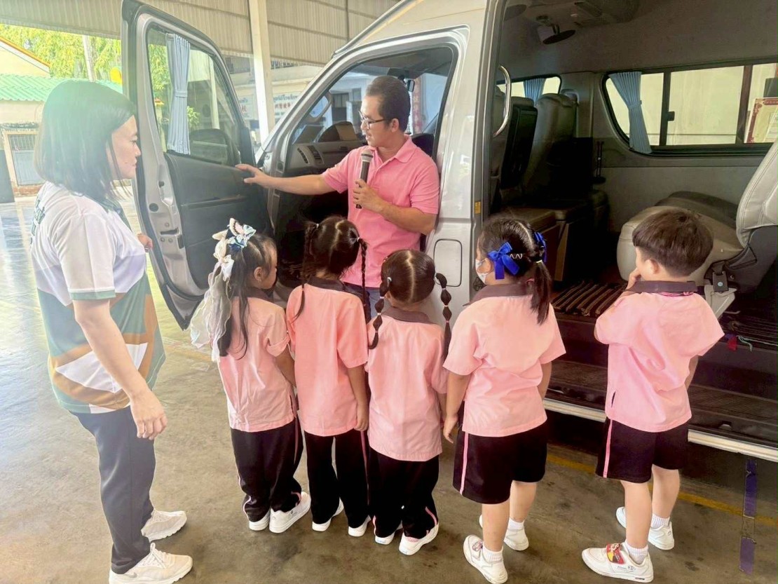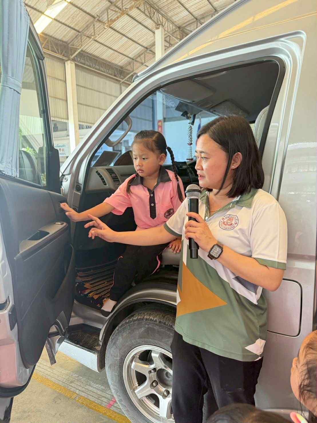 🙏🏻 โดยเชิญวิทยากรพร้อมรถตู้บรรยายเกี่ยวกับการช่วยเหลือตนเองเมื่อเจอเหตุการณ์ติดอยู่ภายในรถ 👧🧒